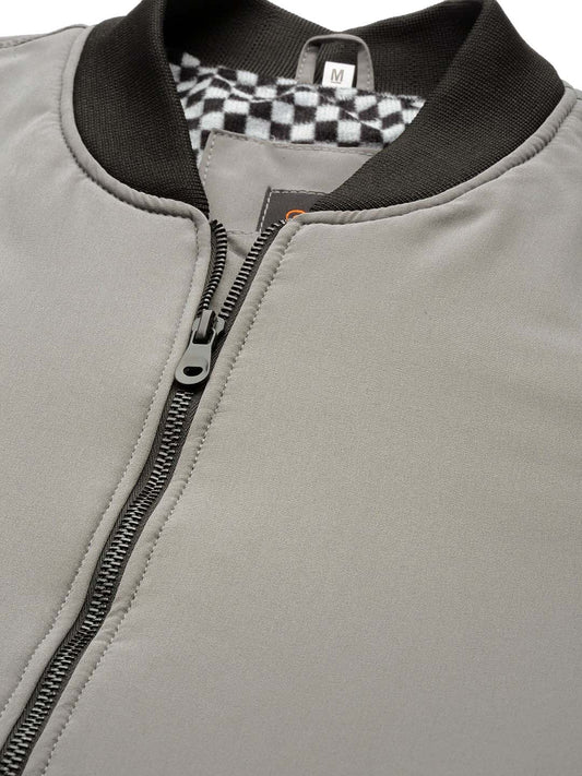 Leather Retail® Mens Solid Polyester Winter Jacket Grey Color( LRM35GE )