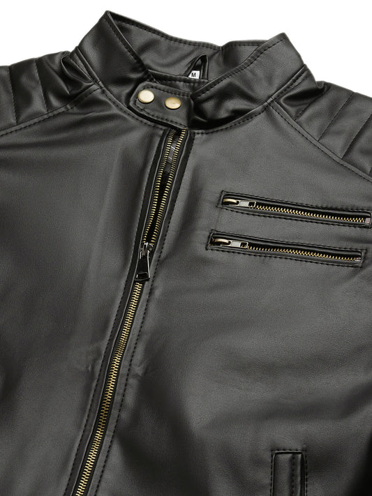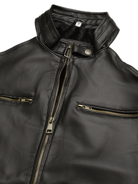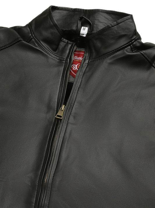 Leather Retail Men's Solid Biker Jacket (LRAIM33BL)