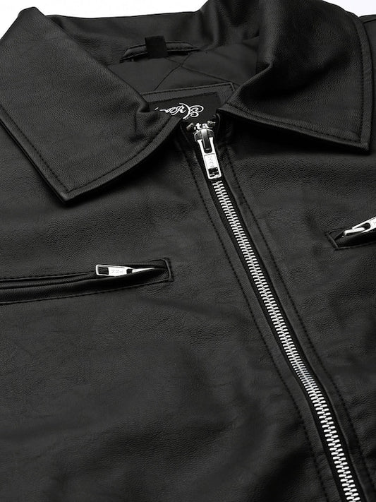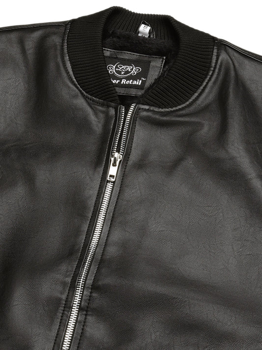 Leather Retail Black Faux Leather Jacket for Men's with Snap Button Closure ( LRM50BL )