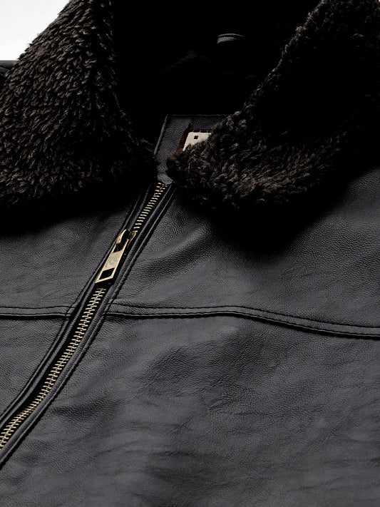 Leather Retail Men's Solid Biker Jacket