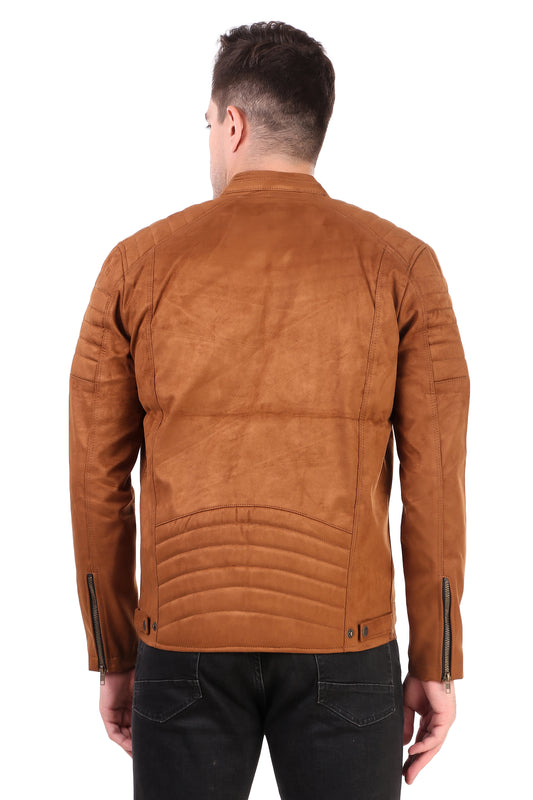 Leather Retail Brown Faux LeatherBiker Jacket for Men's ( LRBRBR )