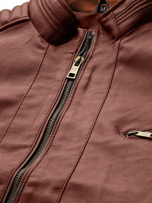 Leather Retail Full Sleeve Men's PU Brown Jacket ( LRM48BR )