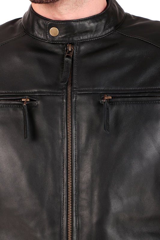 Leather Retail® Men's Solid Biker Jacket ( LRAIRMBL )