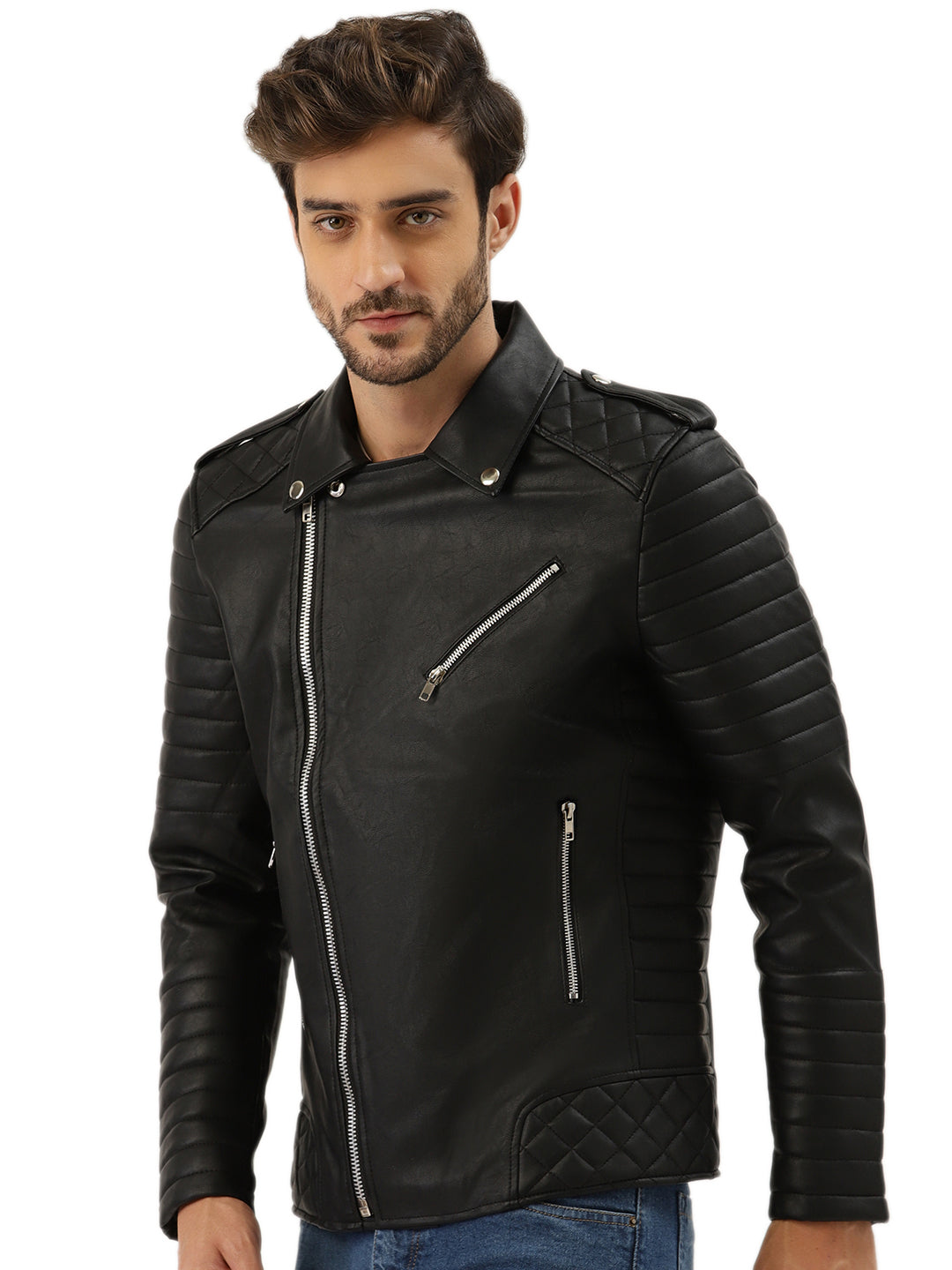 Leather Retail® Men's Solid Biker Jacket( LRRMBL )
