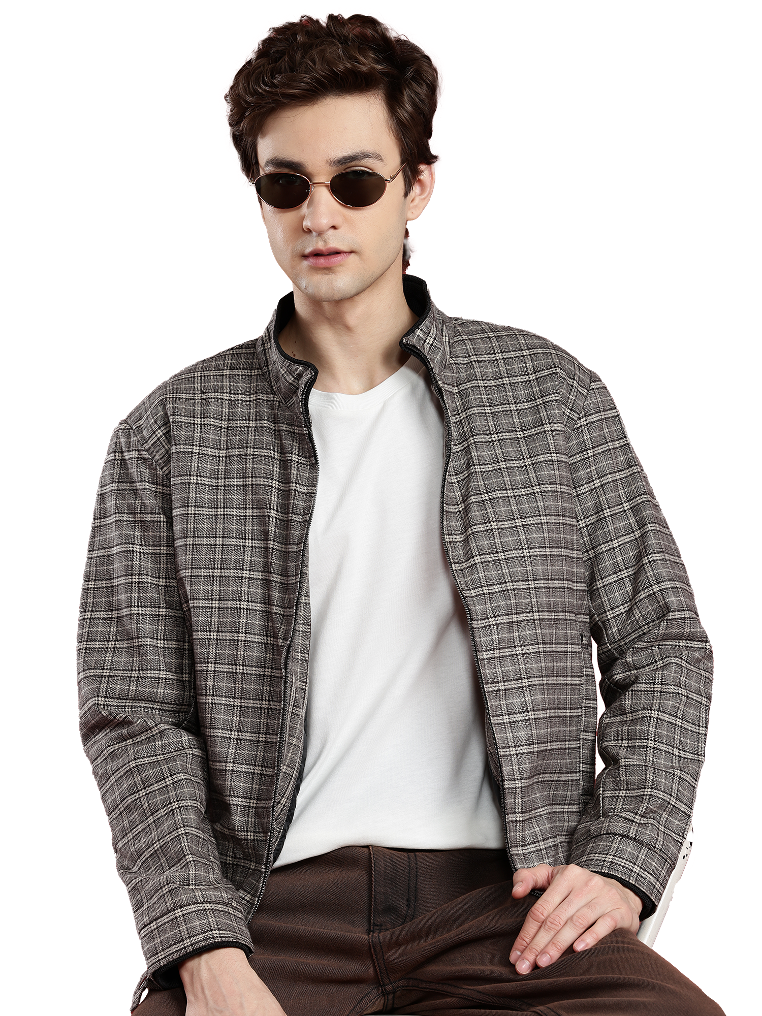 Leather Retail Coffee-White Checkered Multicolor Tweed Jacket ( LRCHECKTD1J )