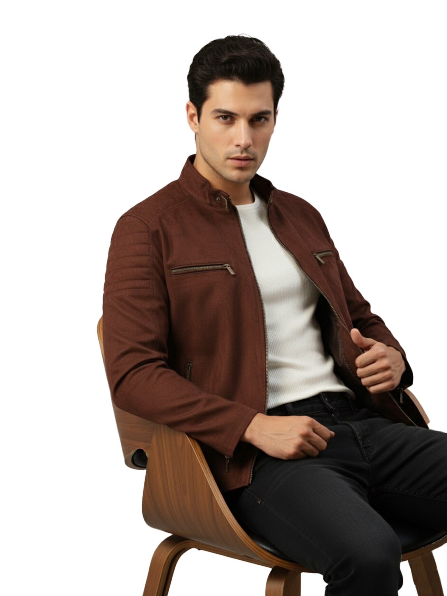 Leather Retail Men's Suede Faux Coffee Leather Jacket ( LRAISUDTWCO )