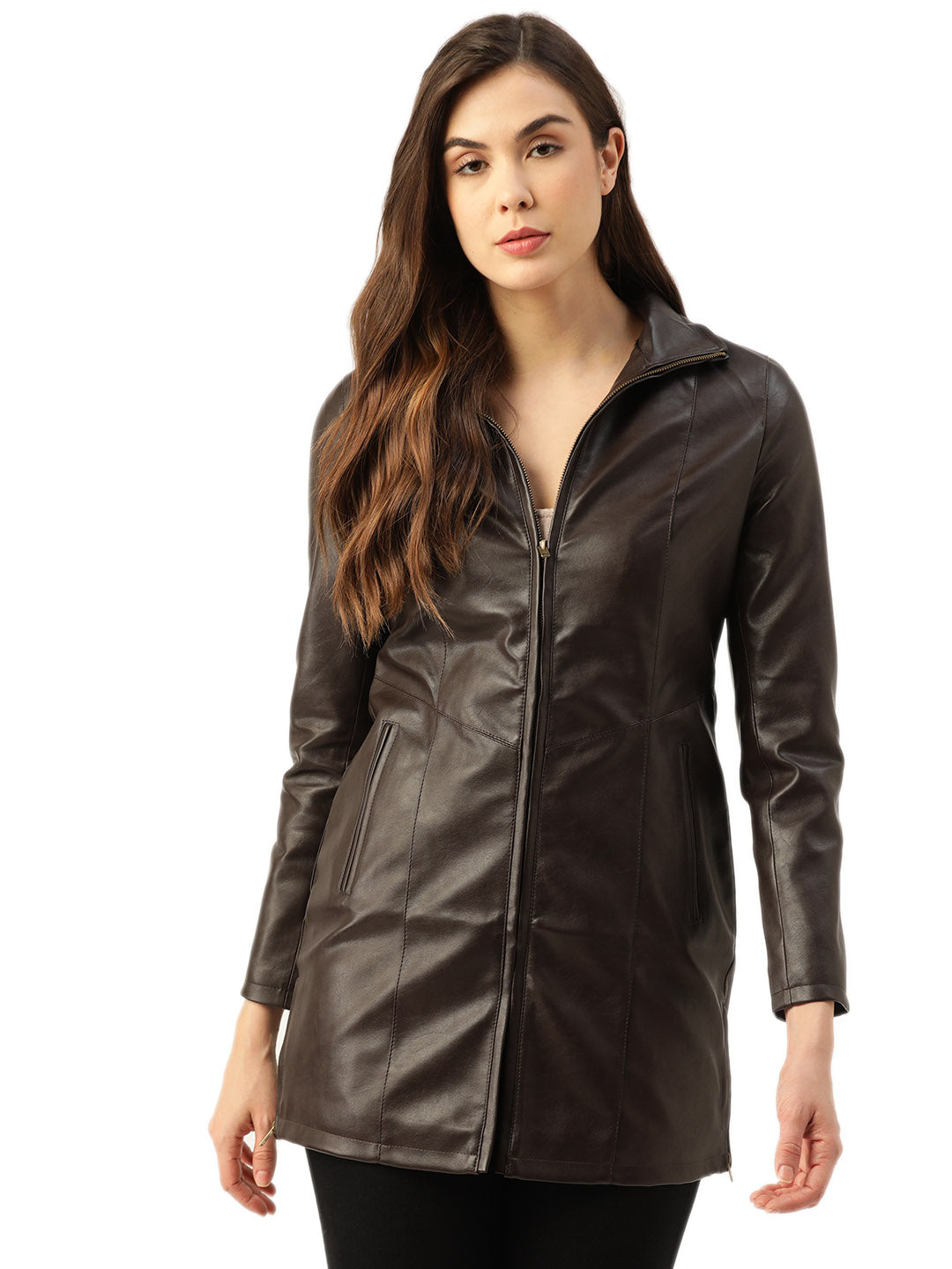 Faux leather is usually associated with strength, authority, and elegance; now you can achieve the same characteristics with this wide range of Faux leather jacket for women inspired by the latest trends. The highly sophisticated women Faux leather jacket features some essential and decorative details like zipper/button closure, multiple pockets, internal viscous/Fur lining etc. These Faux leather jacket women can be worn for numerous occasions including fancy dress parties, outings, trips, etc.